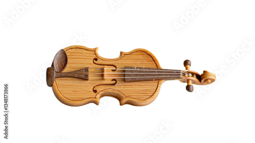 Obraz premium Small wooden violin isolated on transparent background, showing craftsmanship