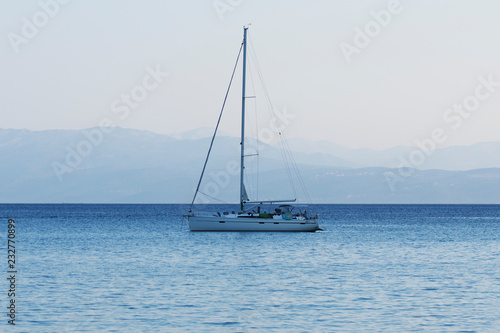 © Ioana, Fototapeta premium Small yacht sailing at dusk