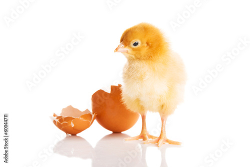 Fototapeta premium Small yellow chick with egg.