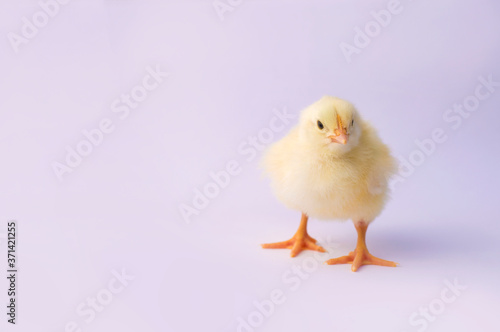 Fototapeta premium small yellow chicken on a light background