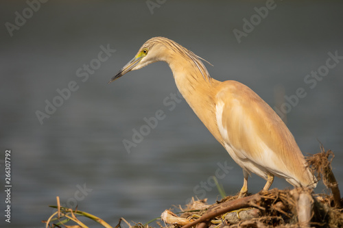 Obraz premium Small yellow heron (Ardeola ralloides) in natural habitat