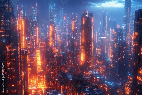 © ChomStyle, Fototapeta premium Smart AI society, digital cityscape, advanced technology, futuristic design