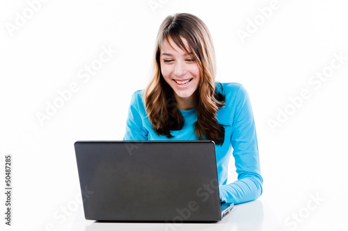 © korvin1979, Fototapeta premium smart and beautiful girl working on a laptop
