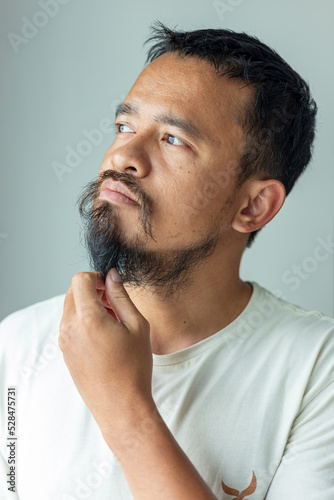 Fototapeta premium Smart asian moustache man thinking something beauty art fashion