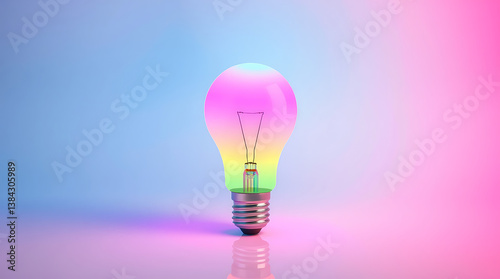 Fototapeta premium Smart Bulb with Vibrant Blue to Pink Gradient on White Background