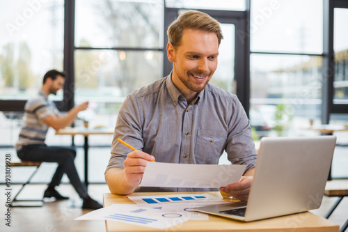 Obraz premium Smart cheerful man working on a project