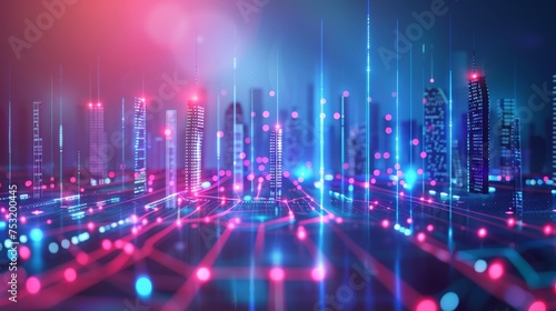Fototapeta premium Smart city and abstract dot point connect with gradient line and aesthetic...