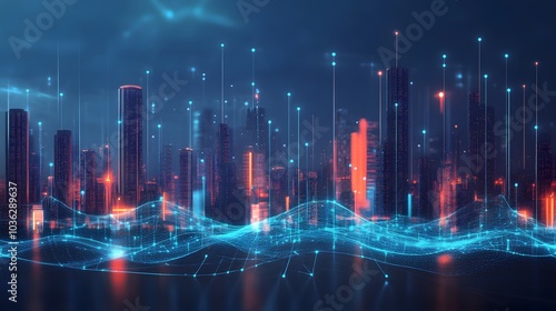 © Farid, Fototapeta premium Smart city and abstract dot point connect with gradient line and aesthetic Intricate wave line design , big data connection technology concept.