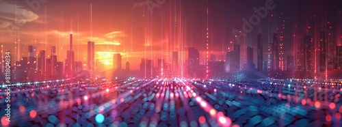 Fototapeta premium Smart city and abstract dot point connect with gradient line and aesthetic...