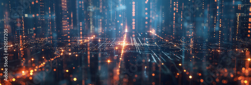 © theevening, Fototapeta premium Smart city and abstract dot point connect with line and aesthetic Intricate wave line design, Big data connection technology concept .