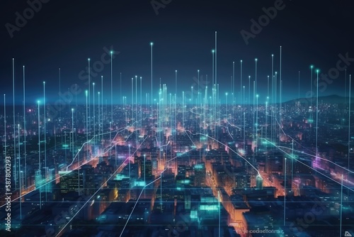 © Hui, Fototapeta premium Smart city and abstract line and dot connect with gradient line design , big data connection technology concept. Generative AI.