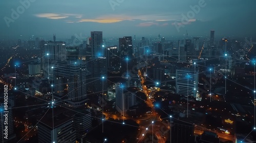 Fototapeta premium Smart city and digital transformation.Big data connection technology AI...
