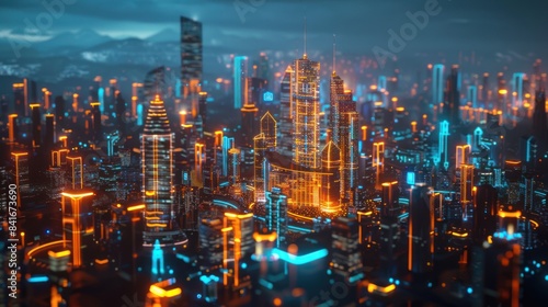 © Wahyu, Fototapeta premium Smart city and digital transformation.Big data connection technology AI generated