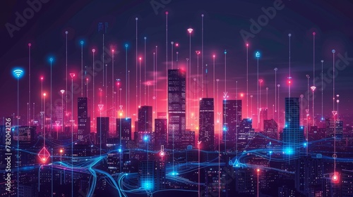 Fototapeta premium Smart city and wireless communication network, Background Abstract