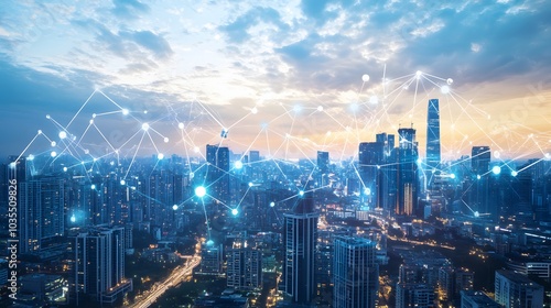 © Farid, Fototapeta premium Smart city big data connection technology concept.