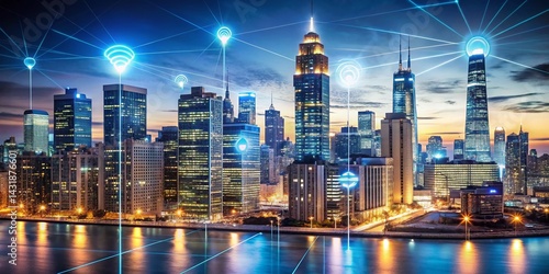 © Adisorn, Fototapeta premium Smart City Chicago Nightscape: IoT Devices Over Skyline