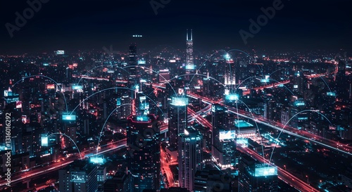 © daffagladius, Fototapeta premium Smart City Cloud Concept AI Robot Data, Line Connection technology Science Concept.