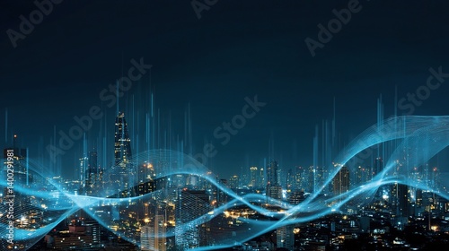 Fototapeta premium Smart City Connection and Big Data Technology Background at Night