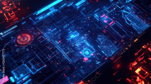 © Futureaz, Obraz premium Smart City Interface with AI-generated Data Flow Visualization