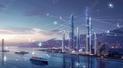 © 大 李, Fototapeta premium Smart city iot concept map