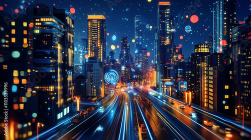 Fototapeta premium Smart City Night Illustration depicting the dynamic interplay of application...