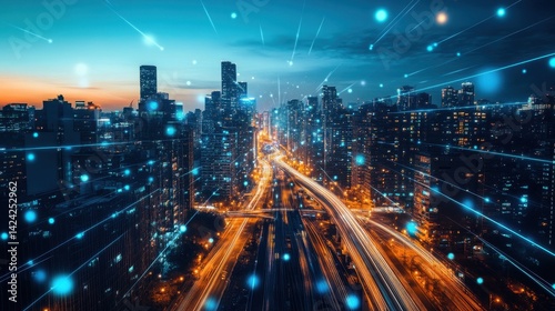 Fototapeta premium Smart City Night Lights Network Connectivity Urban Skyline