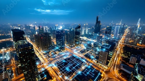© terat, Fototapeta premium Smart City Night - Network & Technology - Smart City Technology