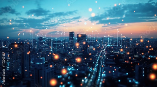 © Anak, Fototapeta premium Smart City Night Skyline Illuminated Network Connections