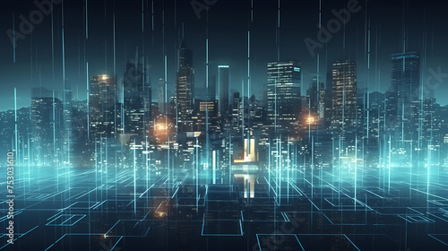 Fototapeta premium Smart city on background, featuring smart infrastructure and connected buildings