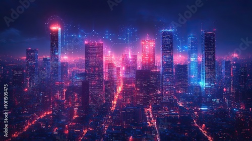 © Feeney, Fototapeta premium smart city on dark blue background featuring intelligent infrastructure ,connected buildings this futuristic cityscape showcases iot 5g ,ai integration generative ai