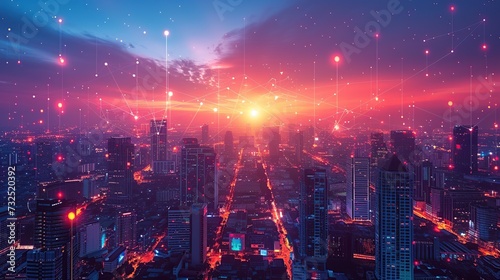 Fototapeta premium smart city points connected with gradient lines Metaverse technology connection concept, night signal with big data.