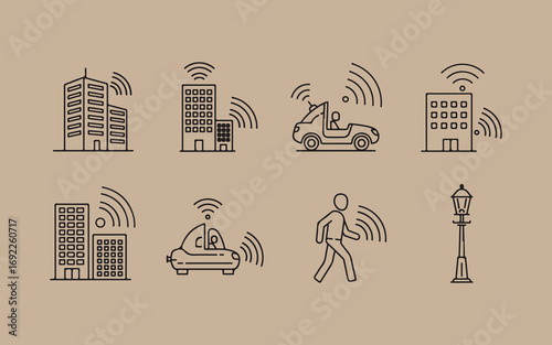Fototapeta premium Smart city technology icons representing connectivity and innovation