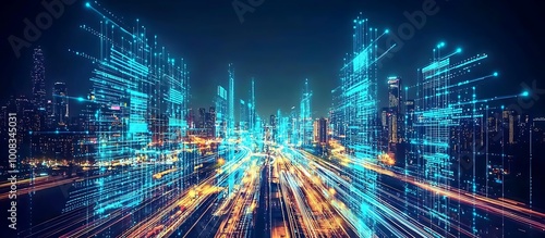 Fototapeta premium Smart city visualized through data analytics, highlighting digital infrastructure for urban services.