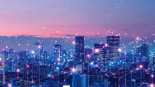 Fototapeta premium Smart City, wallpaper, the modern technology and intelligent communication networks