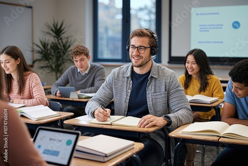 Fototapeta premium Smart Digital Assistant for Classroom Note Taking and Enhanced Learning with...