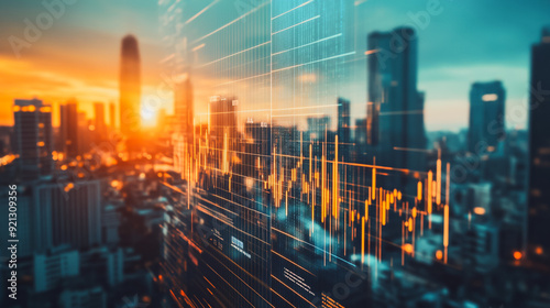 Fototapeta premium Smart digital city with connection network that is at the cutting edge of innovation in technology and business with bright, modern skyscrapers. Backgrounds for technology and charts and graphs