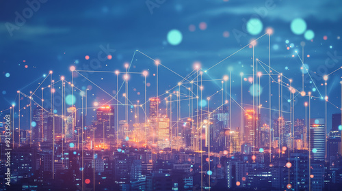 Fototapeta premium Smart digital city with connection network that is at the cutting edge of...