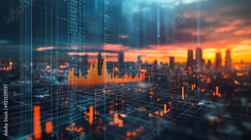 © Teeraphon, Fototapeta premium Smart digital city with connection network that is at the cutting edge of innovation in technology and business with bright, modern skyscrapers. Backgrounds for technology and charts and graphs