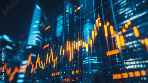 Fototapeta premium Smart digital Innovation Business skyscrapers in the Financial District with...
