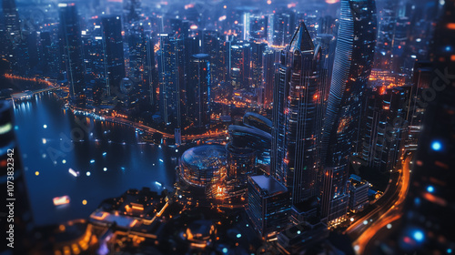 Fototapeta premium Smart digital Innovation city Business skyscrapers in the Financial District...