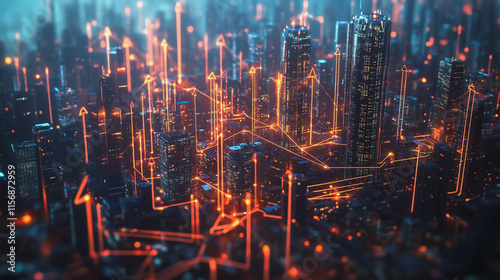 © Teeraphon, Fototapeta premium Smart digital Innovation city with connection network reciprocity over the cityscape. of future smart wireless digital city and social media networking systems that connects people with in city