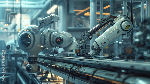 Fototapeta premium Smart factory - Industry 4.0 - Advanced automation - Machinery - Robotics -...