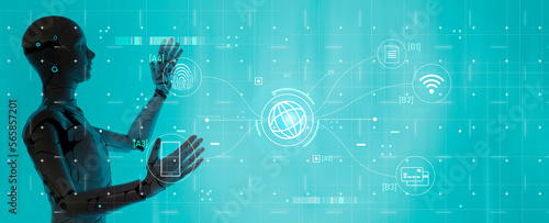 © DIgilife, Obraz premium Smart factory, industry 4.0, M2M computer aided manufacturing , 3D Robot automated team working, future process futuristic industry engineering background, digital technology industry revolution