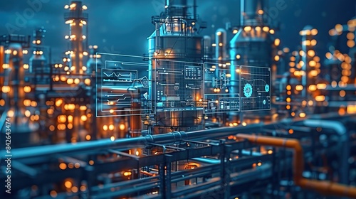 © MochSjamsul, Fototapeta premium Smart factory with connected infrastructure, Intelligent factory industrial virtual screen blend