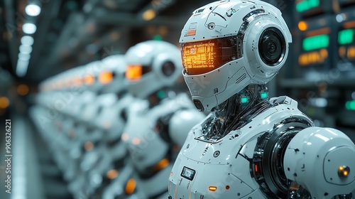 Fototapeta premium Smart factory with robotic workers, representing automated manufacturing.