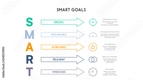 © lukpedclub, Naklejka premium SMART Goals Infographic with Vertical Text and Minimalist Design