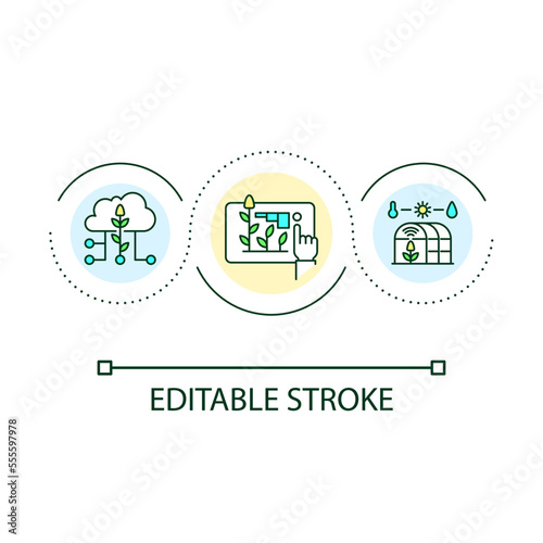 © IMG visuals icons, Fototapeta premium Smart greenhouse loop concept icon. IoT technologies in farming abstract idea thin line illustration. Precision agriculture. Agribusiness. Isolated outline drawing. Editable stroke. Arial font used