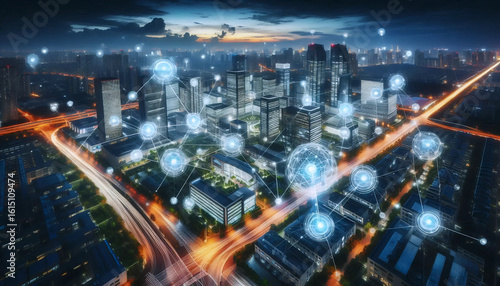 © Yuyu, Fototapeta premium Smart-grid corporate campus, Ai generated image