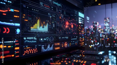 Fototapeta premium Smart Grid Dashboard Visualizing Energy Data and Trends in a City Command Center