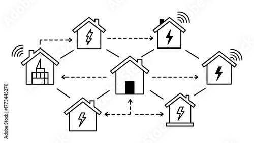 © Tharindu, Fototapeta premium Smart Home Energy Sharing Network Vector Icon - Eco-Friendly Technology